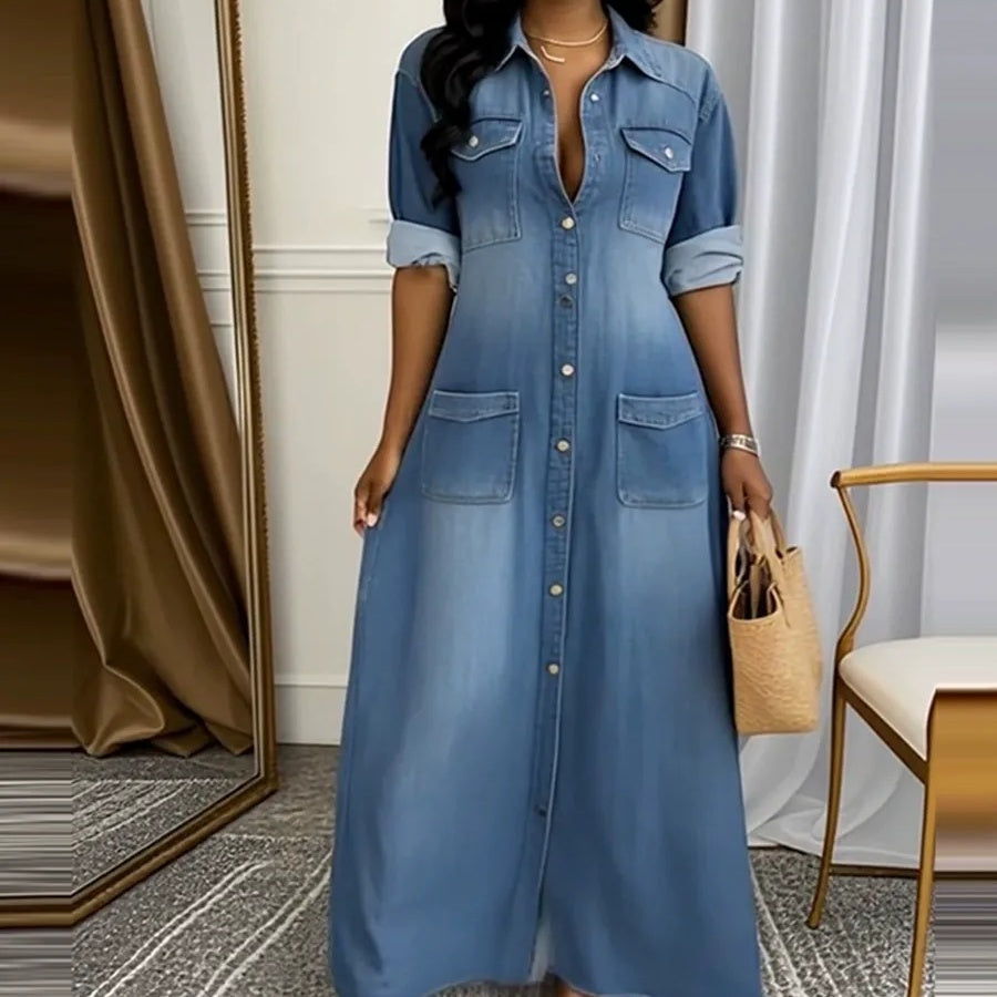 Csomag tartalmazza: A csomag tartalmazza a következőket: 1* Női gomb lefelé Denim Maxi ruha