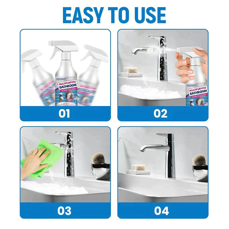 Ez egy átható habos tisztítószer, amely könnyen feloldja a szennyeződéseket, foltokat, zsírt, szappanlerakódásokat stb. Megkönnyíti a mélytisztítást és ragyogóan ragyogóvá teszi a fürdőszobát.