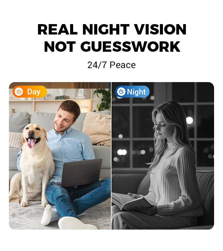 Erőteljes infravörös éjjellátó fényekkel rendelkezik a teljes sötétségben való éles láthatóság érdekében. Élvezd a nyugalmat a folyamatos nappali és éjjeli megfigyeléssel.