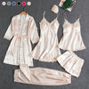TELJES 5 RÉSZES SZETT: Tartalmaz egy köntöst, egy pántos ruhát, egy felsőt, egy rövidnadrágot és egy hosszú nadrágot, így mindenféle stílusigényét kielégíti, ha otthon kényelmesen szeretne pihenni vagy aludni.